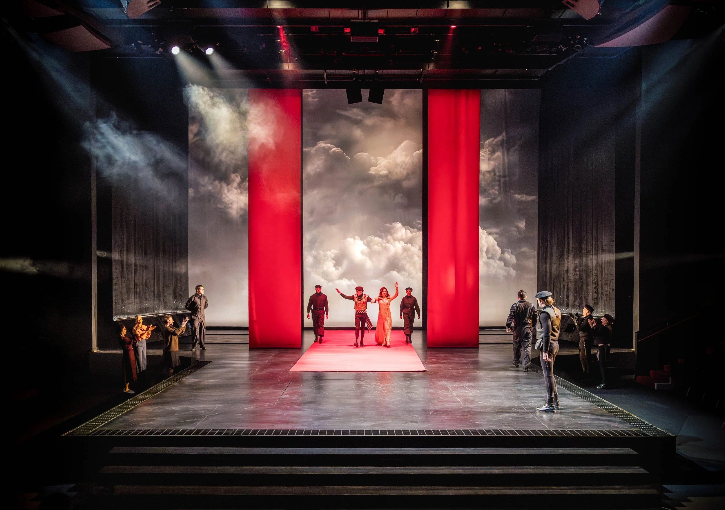 Furthermore, the production wouldn’t be complete without the extremely effective costume design by Judith Dolan. Moving away from the traditional Shakespearean garb, Dolan seems to have taken some inspiration from Star Wars, as the costume design is very reminiscent of the uniforms worn by the Empire as they attempt to take over the galaxy. It may seem like an odd comparison but it is meant as the highest of compliments, as it suits this production’s design to a T.